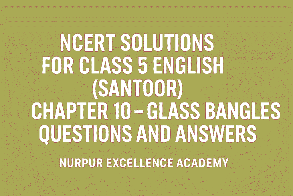 This blog provides easy and complete solutions for NCERT Class 5 English Santoor, Chapter 10 β Glass Bangles. All questions, grammar, vocabulary, writing and activities are explained in simple English, so that Class 5 students can easily understand and use them for homework, classwork and exams.