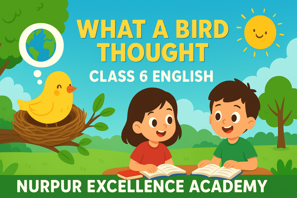 The poem “What a Bird Thought” from Class 6 English (Poorvi) Unit 3 is a delightful piece that describes how a little bird sees the world. At first, the bird thinks the nest is the whole world. As it grows, it sees green trees, and finally the vast blue sky. This changing view reflects how our understanding of the world grows with age and experience.