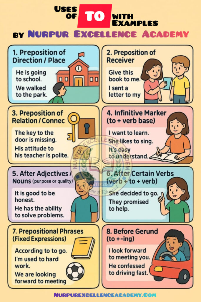 📘 Uses of “TO” in English Grammar (With Examples)